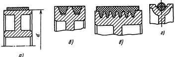 В зависимости от формы поперечного сечения ремня бывают передачи: плоским ремнем (рис. 60,а), клиновым ремнем (рис. 60,б), поликлиновым ремнем (рис. 60,в), круглым ремнем (рис. 60,г). Наибольшее применение в машиностроении имеют клиновые и поликлиновые ремни.