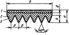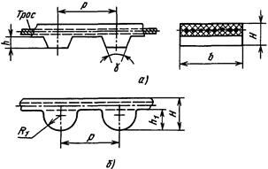 Зубчатые ремни выполняют плоскими с поперечными зубьями на внутренней поверхности (рис. 69). При работе передачи зубья ремня входят во впадины соответствующего профиля на шкивах. Передача зубчатым ремнем работает по принципу зацепления.
