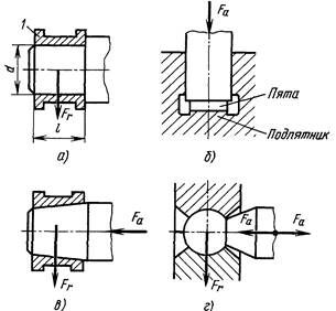 · упорные – предназначенные для восприятия осевой силы Fa–Упорные подшипники часто называют подпятниками (рис. 85,б);
