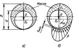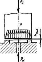 Подшипники скольжения, в которых несущий масляный слой создается при вращении цапфы, называют гидродинамическими. В гидростатических подшипниках режим жидкостной смазки создают за счет подвода масла под цапфу или под пяту от насоса. Давление рм масла должно быть таким, чтобы вал под его воздействием всплыл в масле (рис. 87). В гидростатических подшипниках создание несущего масляного слоя не зависит от угловой скорости вала.