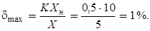 Пример 1: Предел измерения амперметра 10 А, класс точности 0,5. Определите абсолютную и относительную погрешности измерения тока 5 А.