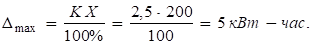 Пример 2: Счетчик электрической энергии зарегистрировал расход энергии 200 кВт-час. Определите абсолютную погрешность измерения энергии, если класс точности счетчика .