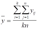 где в числителе стоит сумма квадратов отклонений средних значений выходного параметра на каждом уровне исследуемого фактора от главного экспериментального среднего, определяемого по формуле: