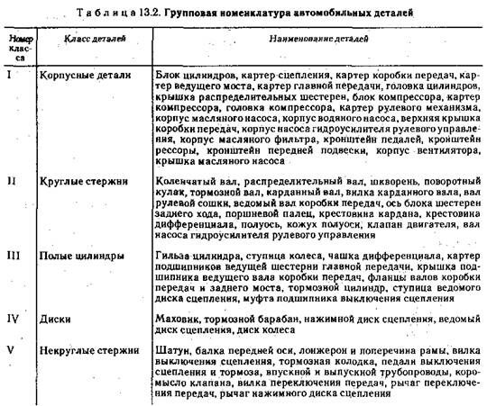 Перечень автомобильных деталей различных классов приведен в табл. 13.2. В зависимости от степени детализации технологические процессы делятся на маршрутные, операционные и маршрутно-операционные.