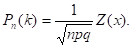 Эта формула предложена Лапласом и читается: вероятность того, что в n независимых испытаниях, в каждом из которых вероятность появления события равна p (0≤p≤1), событие А наступит k раз (безразлично в какой последовательности) приближённо равна Pn(k).