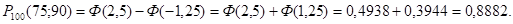 б) Требование, чтобы событие появилось не менее 75 раз, означает, что число появлений события может быть равно либо 75 либо 76 … либо 100. Таким образом, в рассмотренном случае