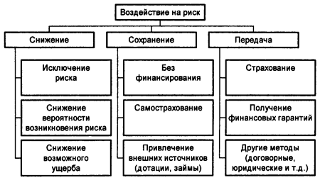В общем случае меры по уменьшению риска можно разделить на три группы – снижение, сохранение, передача риска (рис).