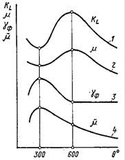 Рис.4. Влияние температуры q на kl, gф и средний коэф. трения m.