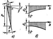 Масса изношенной части инструмента равна произведению объема W изношенной части и плотности rи инструментального материала, т. е. М = Wrи. Объем изношенной части задней поверхности может быть вычислен на основании рис. 5. В сечении главной секущей плоскостью площадь mph сечения истираемой части режущего клина равна площади треугольника тпр (рис. 5, а).