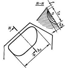 На рис. 2 изображена схема износа передней поверхности инструмента. Образовавшаяся на ней лунка износа характеризуется размерами: шириной lл, длиной bл и глубиной dл. По мере работы инструмента первые следы износа появляются в точке О, соответствующей максимальной температуре передней поверхности. Ширина и глубина лунки постепенно увеличиваются, а радиус кривизны кривой, очерчивающей дно лунки, уменьшается. Одновременно сокращается перемычка f от .края лунки до главного лезвия. Центр кривизны лунки по мере изнашивания передней поверхности отодвигается от главного лезвия, а поэтому по ширине лунка от главного лезвия удаляется значительно быстрее, чем приближается к нему. Перемычка f между главным лезвием и краем лунки имеется только в том случае, когда на передней поверхности образуется хорошо развитый и устойчивый нарост, отодвигающий стружку от главного лезвия инструмента. Когда нароста нет или он настолько мал, что не может оказать защитного действия по отношению к инструменту, то перемычка отсутствует и лунка полностью не формируется.