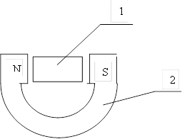 Рис.1. Схема магнитной цепи амперметра постоянного тока.  (1 – магнитомягкая вставка, 2 – постоянный магнит).
