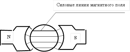 Постоянный магнит создает магнитный поток, замыкающийся через магнитомягкую вставку. Вставка обеспечивает минимальные потери магнитного потока и формирует однородное поле в зазоре. Направление магнитных силовых линий в зазоре показано на рис.2.