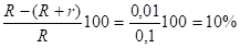 Предположим, что сопротивление нагрузки  R – равно -  0,1 Ом, сопротивление амперметра r – равно 0,01 Ом. В этом случае сопротивление нагрузки много больше, чем сопротивление измерительного прибора, и можно ожидать, что результат измерения буде достаточно точным. Рассчитаем относительную ошибку измерения. До включения измерительного прибора сопротивление цепи R равно 0,1 Ом, после включения амперметра в цепь сопротивление цепи равно R + r =0,11 Ом. Относительное изменение сопротивления цепи составит  .