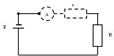На рис.5. амперметр представлен идеальным измерительным прибором А, и сопротивлением r. Сопротивление r равно по величине омическому сопротивлению катушки амперметра и соединительных элементов. Сопротивление R – сопротивление нагрузки. Е – источник напряжения.