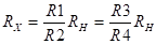 Допустим, что не известно сопротивление R1=RX, тогда из условия равновесия моста получаем    Это выражение является основным уравнением для расчета искомого сопротивления. Равновесие моста достигается подбором сопротивления R2 или изменением отношения R3/R4.