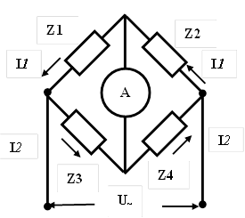 Так если Z3 и  Z4 являются чисто активными, то в двух других смежных плечах характер реактивности должен быть одинаков (либо индуктивности, либо емкости).