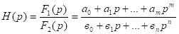 Поскольку передаточная функция получается в результате решения алгебраических уравнений для операторной схемы, то она представляет из себя дробно-рациональную функцию: