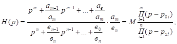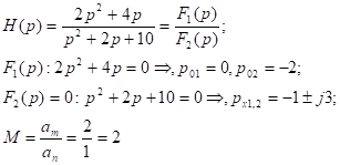 это означает, что корни знаменателя – это корни характеристического уравнения. Значения p, при которых передаточная функция = 0, называются нулями функции: