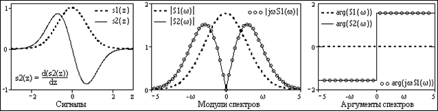 Рис. 3.2.4. Спектры сигнала и его производной.