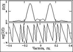 Пример спектральной функции S(f) для сигнала s(t) на рис. 3.2.2 приведен на рис. 3.2.3. Как правило, графическое отображение спектральных функций выполняется в виде модуля и аргумента спектральной функции (амплитудного и фазового спектра), приведенных на рис. 3.2.4.