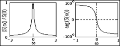 Функция S(w) бесконечна по частоте. Форма импульса, модуль и аргумент его спектра (фазовая характеристика в градусах) приведены на рис. 3.2.7.