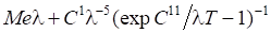 Если спираль лампы рассматривать как абсолютно черное тело, то зависимость плотности излучения от температуры и длины волны можно описать законом излучения Планка