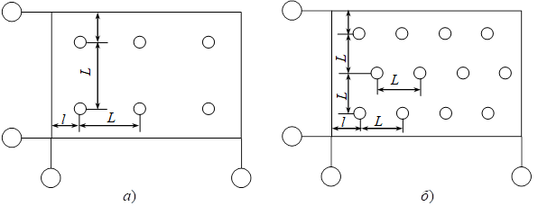 а) – по углам прямоугольника; б) – в шахматном порядке