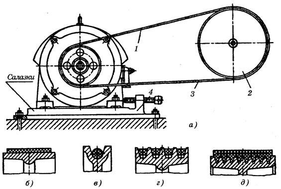 Рисунок 8.1 – Схема ременной передачи (а) и сечения ремней: