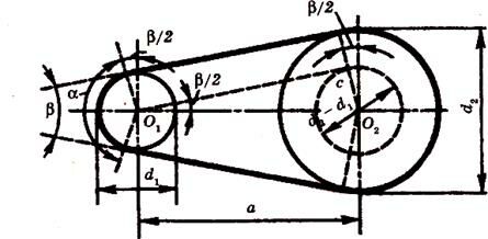 Рисунок 8.4 – Геометрические параметры ременной передачи