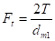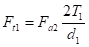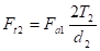 окружная сила колеса Ft2, равная осевой силе червяка Fa1