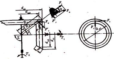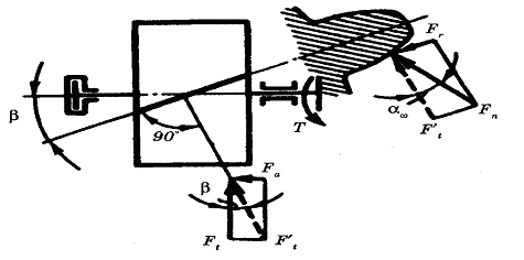 В осевой плоскости силы Ftz и Fr являются составляющими Fn= Fncos