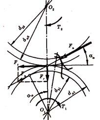 Рисунок 11.6 – Силы, действующие в прямозубом цилиндрическом зацеплении