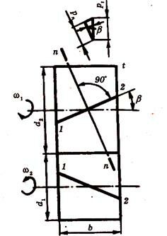 применяют и для расчета червячных передач. Для архимедовых червяков радиус кривизны витков червяка в осевом сечении ρ1 =