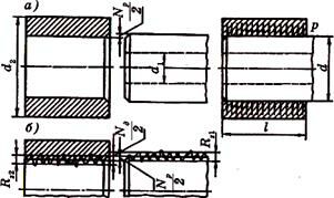 На основании практических данных установлено, что цилиндрические соединения с гарантированным натягом могут быть вполне надежными даже при наличии на внутренней поверхности охватывающей детали пластических деформаций. Это обстоятельство позволяет принимать при расчетах более высокие, чем обычно, допускаемые напряжения.