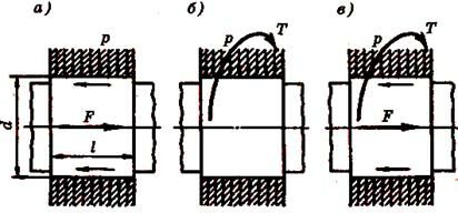 при нагружении соединения одновременно осевой силой F и крутящим моментом Т (рис. 7.2, в) должно соблюдаться условие