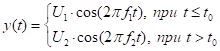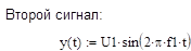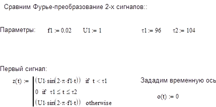 Один сигнал y(t) – радиоимпульс прямоугольной формы, второй z(t) – тот же радиоимпульс, но с разрывом посередине, т.е. по существу это два радиоимпульса (последовательных) с одной и той же частотой заполнения.