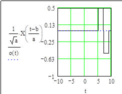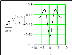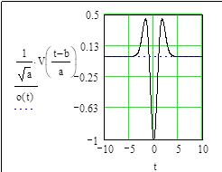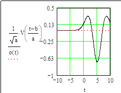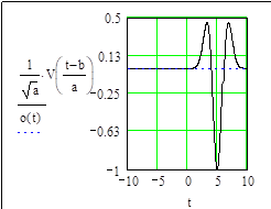 Итак, при изменении параметров b и a вейвлет движется по оси времени t и одновременно при этом расширяется. В силу данных свойств вейвлетов, используя их в качестве базисной функции, можно осуществлять частотно – временной анализ сложных сигналов, а не только частотный согласно Фурье – преобразованию.