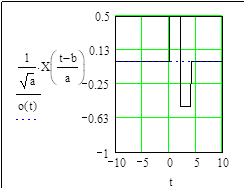 Основные признаки вейвлета: он имеет вид короткой, ограниченной во времени волны, расширяющейся или сжимающейся в зависимости от параметра a и перемещающийся по оси времени в зависимости от параметра b.