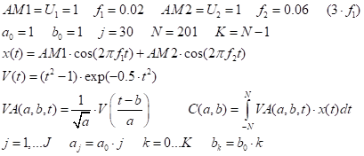 При этом частотный анализ при Ф – преобразовании в виде функции S(ω) заменяется при V – преобразовании на частотно – временной анализ с помощью зависимости C(a,b), которую можно затем преобразовать к виду W(ω,t) (т.е. получить “исходник”).