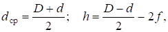 Для прямобочных шлицевых соединений средний диаметр поверхности контакта и высоту поверхности контакта рассчитывают по следующим зависимостям: