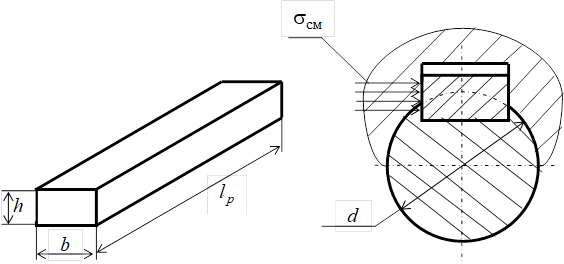 подобраны таким образом, что среза шпонки не происходит, поэтому шпонку проверяют по напряжениям смятия. При расчете принимается, что сила давления ступицы на выступающую часть шпонки равномерно распределена как по высоте, так и по длине шпонки.