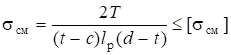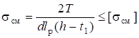 Условие прочности на смятие по узкой грани тангенциальной шпонки имеет вид: