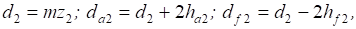 зубьев червячного колеса в среднем сечении определяются по формулам:
