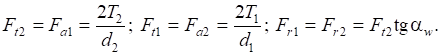Силы в зацеплении червячной передаче (рис. 62) считают приложенными полюсе зацепления и определяют по зависимостям: