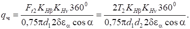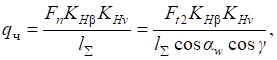 Расчетная нагрузка. По аналогии с косозубой передачей удельная нагрузка