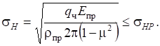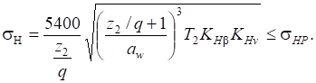 Расчет на прочность по контактным напряжениям. В качестве исходной формулы используем формулу Герца