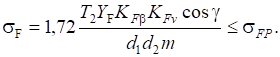 Учитывая особенности червячной передачи, формула для определения напряжений изгиба принимает вид: