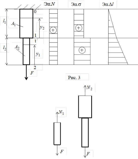(рис. 3). Брус имеет два характерных участка. Для определения нормальной силы