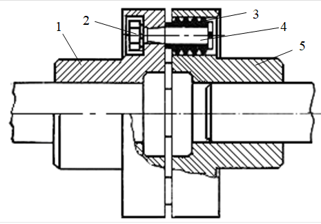 Предохранительные муфты. Предохранительная муфта служит   разъединения валов или вала с сидящей на нём деталью при  перегрузке  или недопустимой скорости вращения, т. е. предохраняющая машину от поломки в случае нарушения нормального режима работы. Муфты предохранительные с разрушающимся элементом отличаются малыми габаритами и высокой точностью срабатывания. При перегрузке предохранительный элемент срезается, и полумуфты размыкаются. Для восстановления работоспособности машины, ее необходимо остановить и заменить предохранительный элемент.