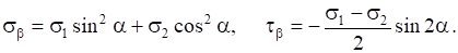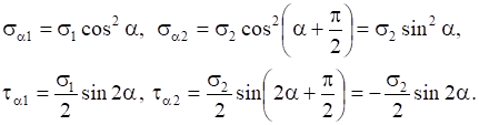 Прямая задача. Для решения этой задачи воспользуемся принципом независимости действия сил. Представим плоское напряженное состояние в виде суммы двух независимых линейных напряженных состояний: первое – при действии только напряжений